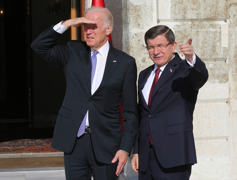 Photo: US Vice President Joe Biden (L) with Turkish Prime Minister Ahmet Davutoglu (R) at the presidential office in Istanbul, Turkey on 23 January, 2016 (AA).