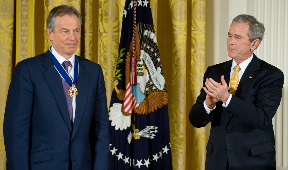 Photo: The then US President George W. Bush presenting the Presidential Medal of Freedom to former British Prime Minister Tony Blair (L) in the East Room of the White House in Washington, DC, 13 January 2009 (AFP).