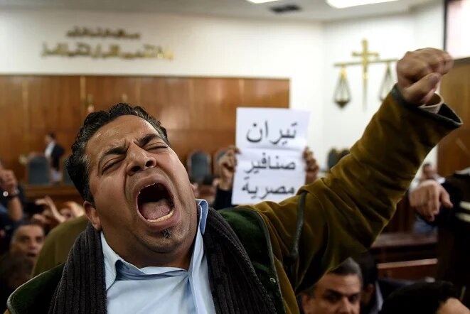 Photo: Egyptians react on 19 December 2016 at the high administrative court as a judge announces the postponing of a court ruling in the case of two Red Sea islands to 16 January 2017 in Cairo (AFP)