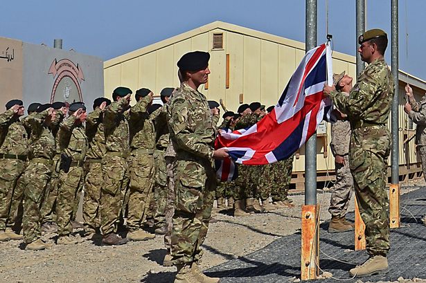 Photo: British soldiers lower the flag at Camp Bastion in Afghanistan (AFP)