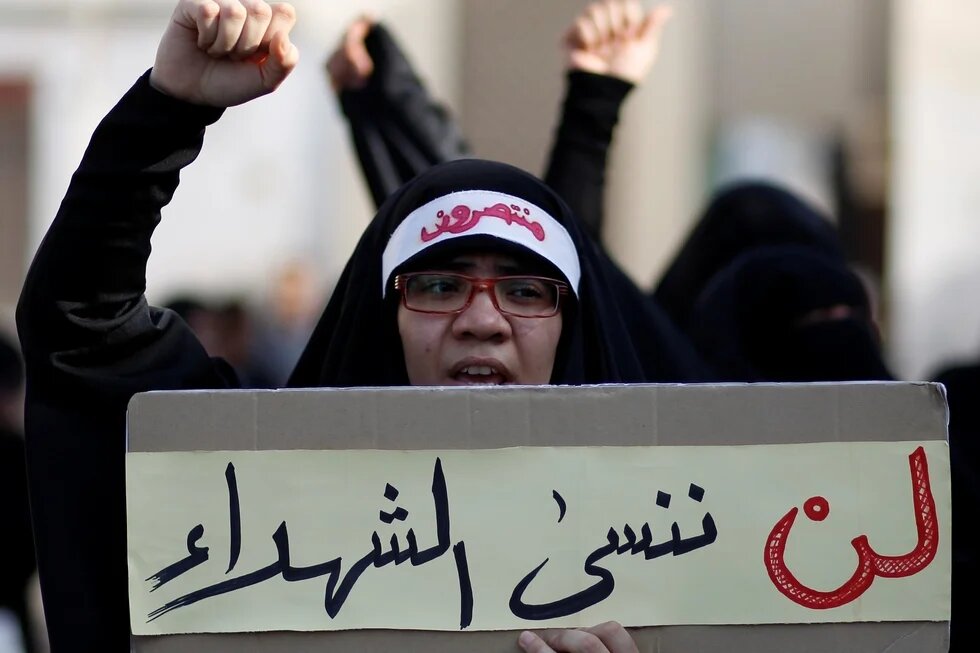 Photo: A protester holds a placard, which reads: "We will not forget our martyrs", as she shouts anti-government slogans during the funeral procession for Hassan al-Hayki, who was detained by authorities and died on Sunday, in Manama, Bahrain, 2 August 2016 (Reuters)