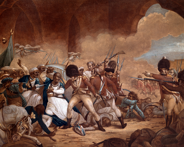 Tipu Sultan's last stand painting as depicted in Leicester Square. The canvas, which glorified Britishness, was followed by additional works focused on Britain vanquishing the figure of the Muslim (British Military Museum website)