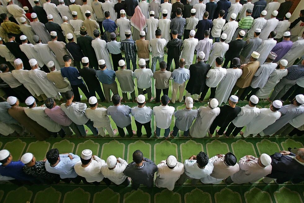 Photo: British Muslims pray during Friday prayer at the East London mosque on 15 July 2005 (AFP).