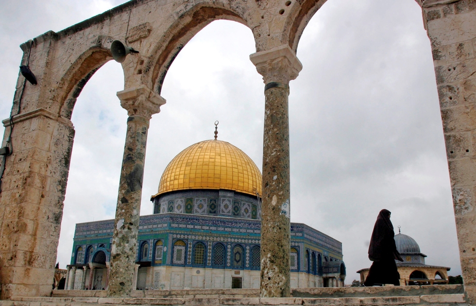 Photo: A Palestinian woman walks past the Dome of the Rock Mosque in the al-Aqsa mosque complex, known to Muslims as al-Haram al-Sharif and to Jews as Temple Mount, in the Old City of Jerusalem on 16 February 2007 (Reuters)