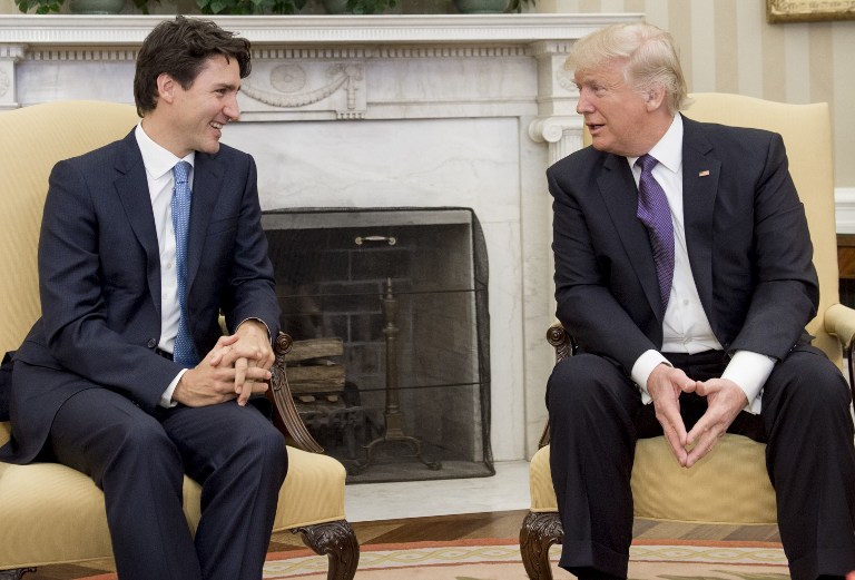 Photo: US President Donald Trump and Canadian Prime Minister Justin Trudeau hold a meeting in the Oval Office of the White House in Washington, DC, 13 February 2017 (AFP)