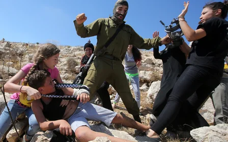 Israeli soldiers or police often arrest Palestinian children younger than the legal age of responsibility (12). Thus, for example, in July 2013 in Hebron they arrested Wadi’ Maswadeh on suspicion of throwing stones at soldiers. Maswadeh was five years old. His father was handcuffed right in front of him, until the two were released a while later.