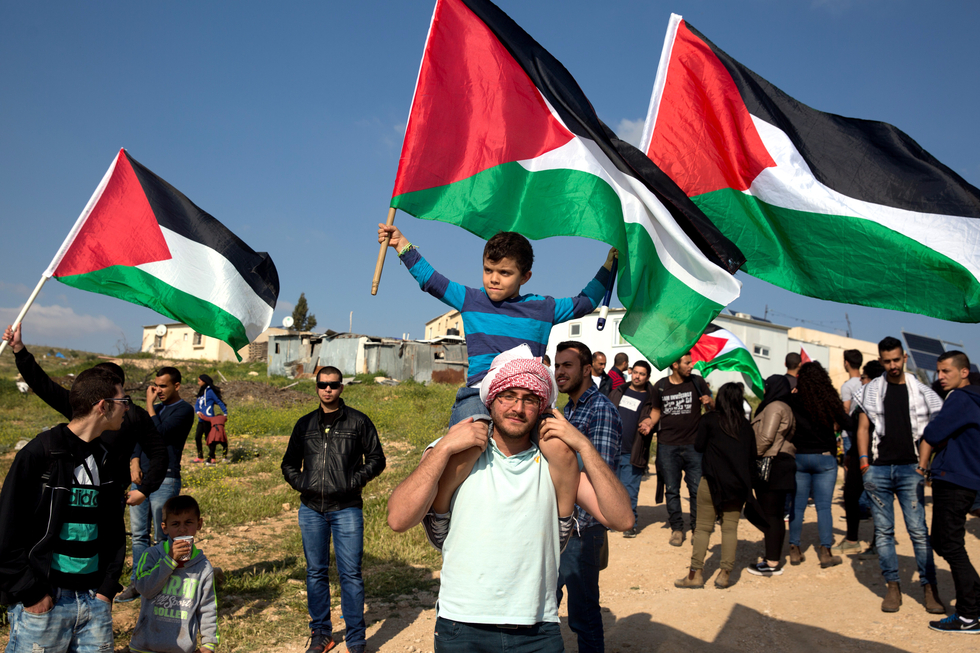 Photo: Bedoun protest, waving Palestinian flags, during this year's Land Day demonstrations against Israel's discriminatory policies (AFP)