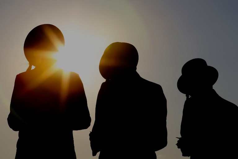 Image: Ultra-Orthodox Jewish men pray along the Mediterranean Sea in the Israeli city of Herzliya, near Tel Aviv, while performing the "Tashlich" ritual on 17 September 2018 (AFP)