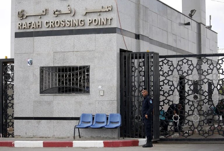 Photo: A Palestinian security officer stands guard at the Rafah border crossing on 26 September (AFP)