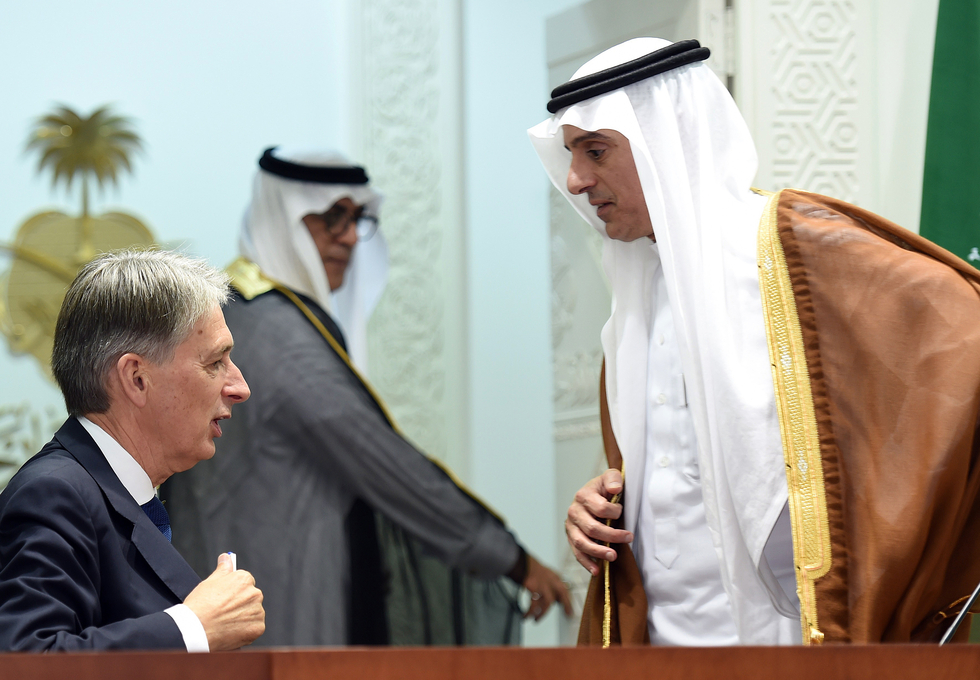 Photo: British Foreign Secretary Phillip Hammond (L) and his Saudi counterpart Adel al-Jubeir leave after a holding a press conference at the Saudi foreign ministry press hall, on 28 October, 2015 in Riyadh (AFP).