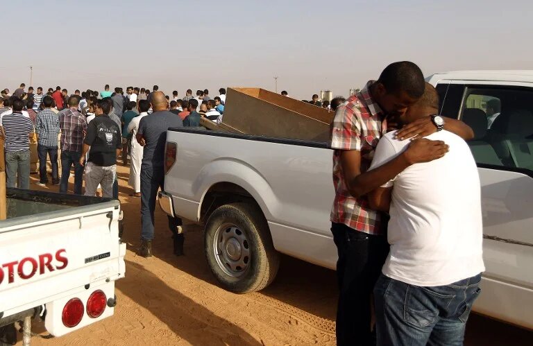 Photo credit: Funeral for Libyan activist Tawfik Bin Saud in Benghazi on 20 September. Tawfik was killed, along with a friend, late on 19 September, by unknown gunmen as they were driving home in Libya's eastern coastal city of Benghazi. For several months, the city has seen clashes between army forces loyal to Haftar and Islamist militias, including members of Ansar al-Sharia (AFP)
