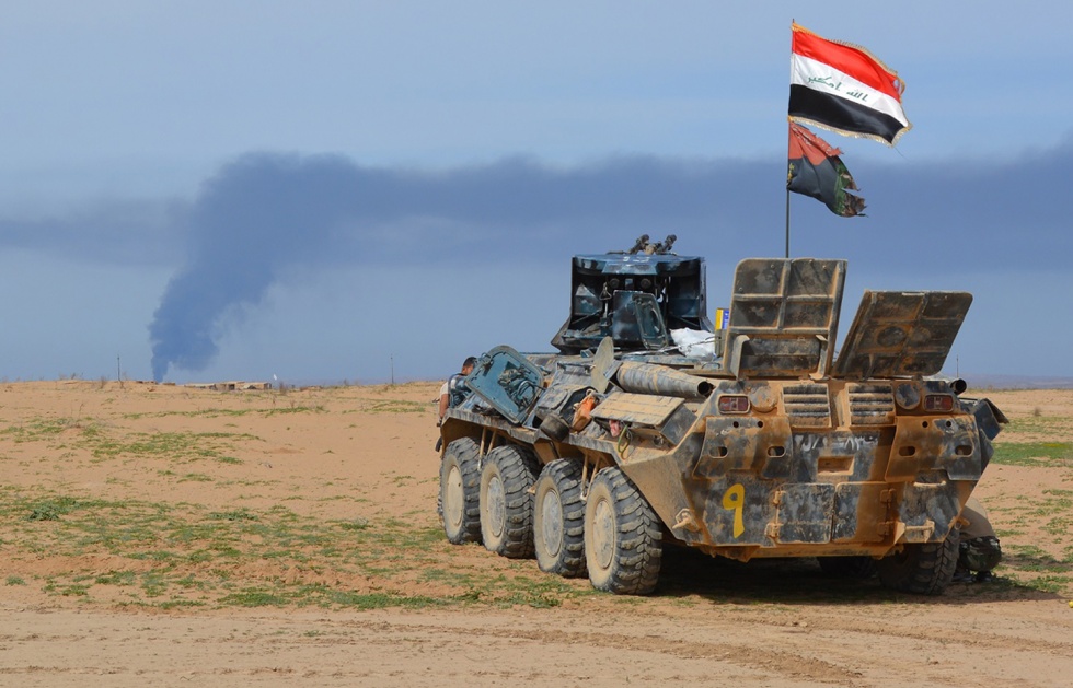 Photo: Iraqi pro-government forces hold a position in al-Alam village (AFP)