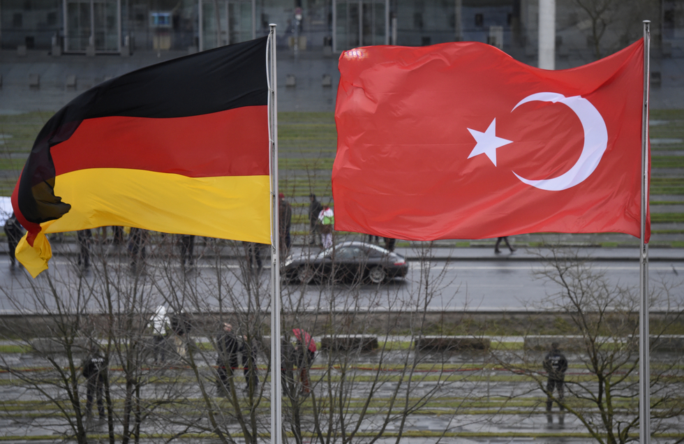 Photo: The German (L) and the Turkish national flags flutter in front of the Chancellery in Berlin, on 12 January, 2015 in Berlin (AFP).