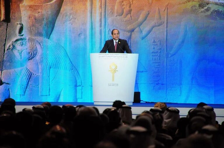 Photo: Egyptian President Abdel Fattah al-Sisi speaks during the Egypt Economic Development conference in the Red Sea resort of Sharm el-Sheikh on Friday (AFP PHOTO/HO/EGYPTIAN PRESIDENCY)