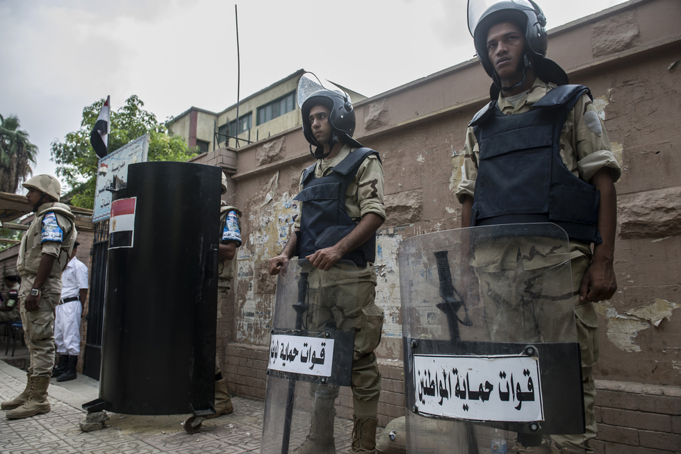 Image: Egyptians soldiers stand guard outside a polling station in the Dokki neighbourhood in Cairo's Giza district, on the second day voting in Egypt's parliamentary elections on October 19, 2015. (AFP)