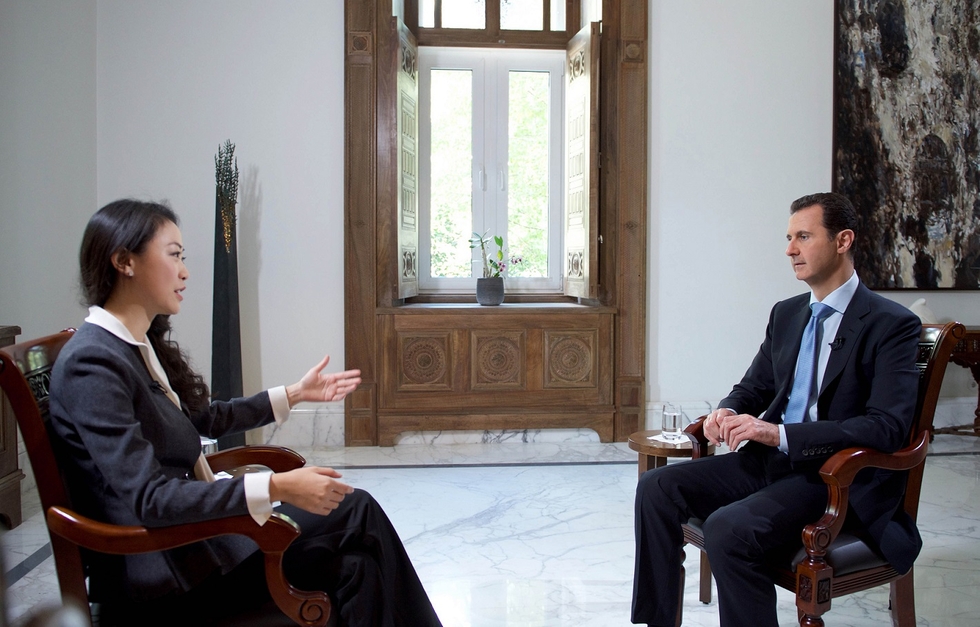 Image: In a handout picture provided by the Syrian Arab News Agency (SANA) shows Syrian President Bashar al-Assad (R) speaking with a journalist from China's Phoenix television on 22 November 2015, in Damascus. (AFP)