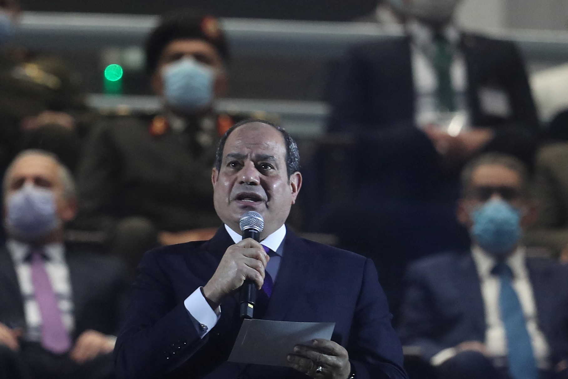 Egyptian President Abdel Fattah al-Sisi delivers a speech on 13 January, 2021 (AFP)