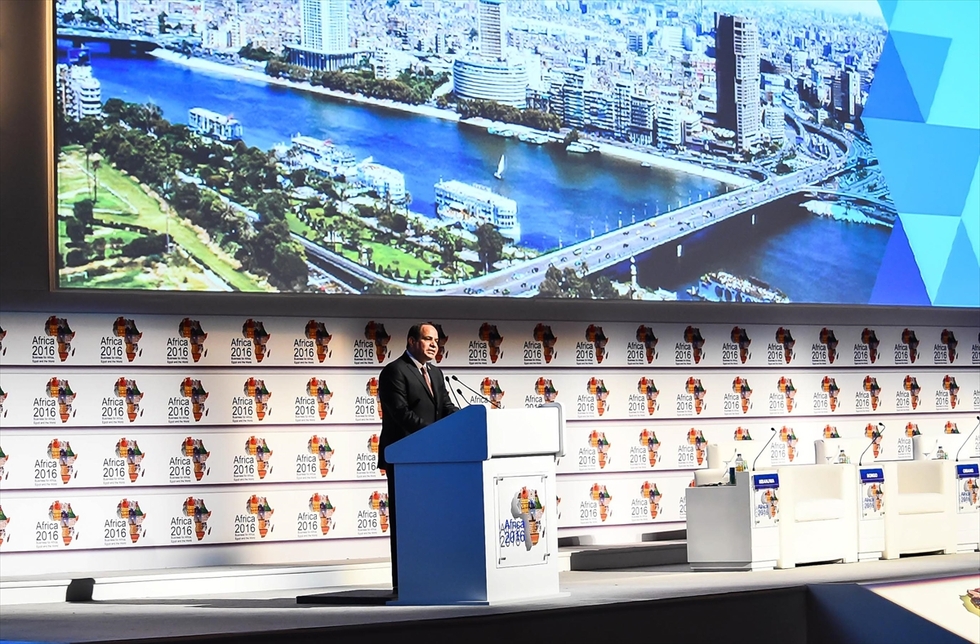 Photo: Egyptian President Abdel Fattah al-Sisi delivers a speech during African Forum 2016 in Sharm el Sheik, Egypt on 20 February, 2016 (AA).