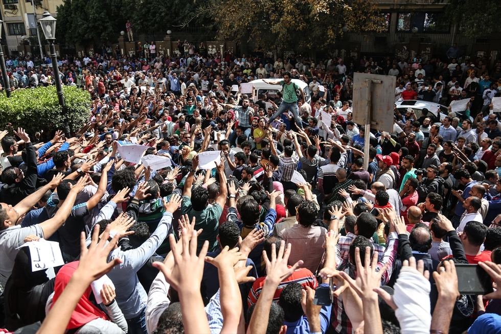Photo: Egyptians protest against their government decision to hand over control of the two strategic Red Sea islands of Tiran and Sanafir to Saudi Arabia, in front of the Press Syndicate building in Cairo on 15 April, 2016 (AA).