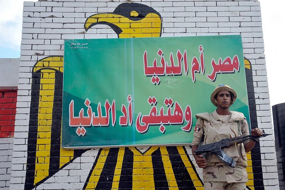 Photo: An Egyptian soldier stands guard at a polling station in the Mediterranean city of Marsa Matruh on 18 October, 2015, with an Arabic writing on placard reads "Egypt is the cradle of civilization and it shall remain as large as the word" (AFP).