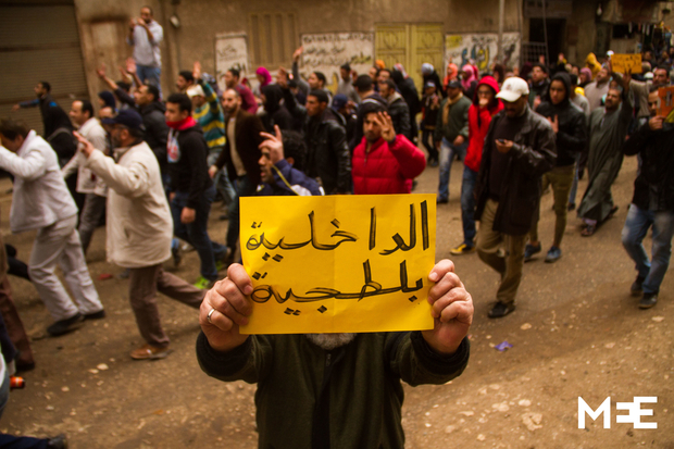 Image: 'The interior ministry are thugs,' says one sign from Monday's protests in Giza (MEE)