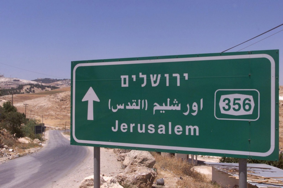 Photo credit: Pictures of a roadsign pointing to Jerusalem taken in 2000 (AFP)