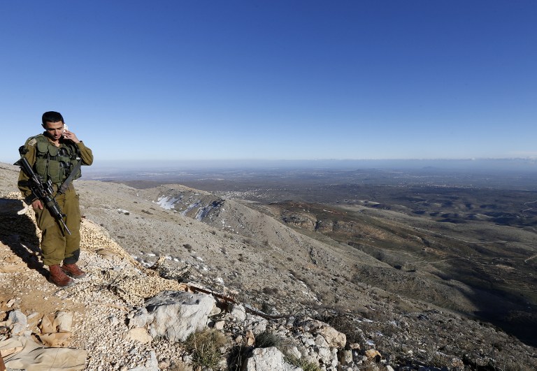 Photo: An Israeli soldier speaks on his mobile phone at a military outpost during a visit of Israel's Prime Minister on February 4, 2015 at Mount Hermon which sits in the Israeli occupied Golan Heights on the border between Lebanon, Syria and Israel. (AFP)