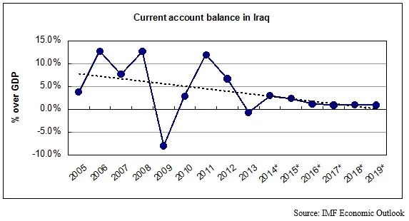 De-linked from political developments, oil-dependent Iraq also needs to measure up to a new evolving economic scenario in order to sustain growth. Besides persistent low oil prices, Iraq has to contend with an even smaller private non-oil sector, and has budgetary needs 10 times higher than the last time oil remained at $40 per barrel - $13bn in 2004 compared to $150bn in 2014. Iraq’s vulnerability in these terms is highlighted in two ways. The first is the effect on the fiscal position of the government.