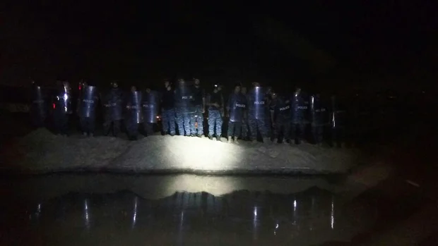 The following night, about 150 people took to the construction site at night, carrying torches. This time, there was a trench with sewage water between the site and the rest of the beach, with only a small wooden plank separating the two areas.