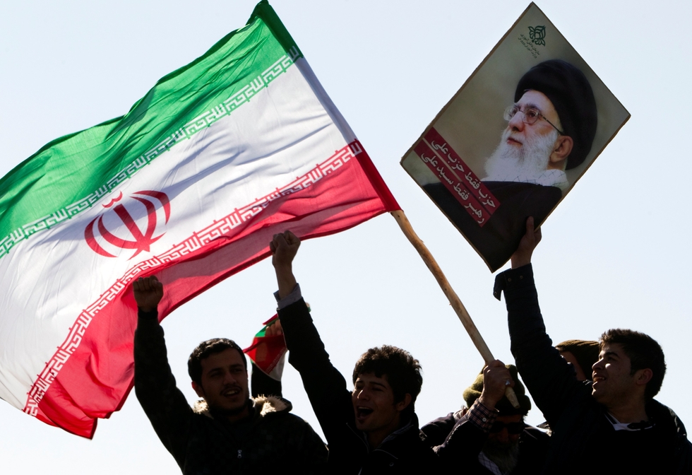 Photo: Demonstrators wave Iran's flag and hold up a picture of supreme leader Ayatollah Ali Khamenei during a ceremony to mark the 33rd anniversary of the Islamic Revolution, in Tehran's Azadi square February 11, 2012 (REUTERS)
