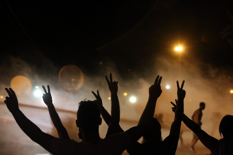 Photo: Lebanese protesters gesture in front of security forces during a demonstration denouncing Lebanon's stagnant political system, which has become the target of demonstrations following a trash crisis, on 8 October 2015, in Beirut (AFP)