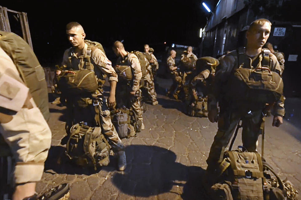 Photo: A image grab made on April 17, 2015 from a video released by the ECPAD (French Defense Audiovisual Communication and Production Unit) shows soldiers of the French second Foreign Parachute Regiment (REP) before jumping off a plane on April 17, 2015 during an airborne operation at the "Salvador Pass" at the border between Libya and Niger, as part of the anti-jihadist operation in the Sahel "Barkhane".