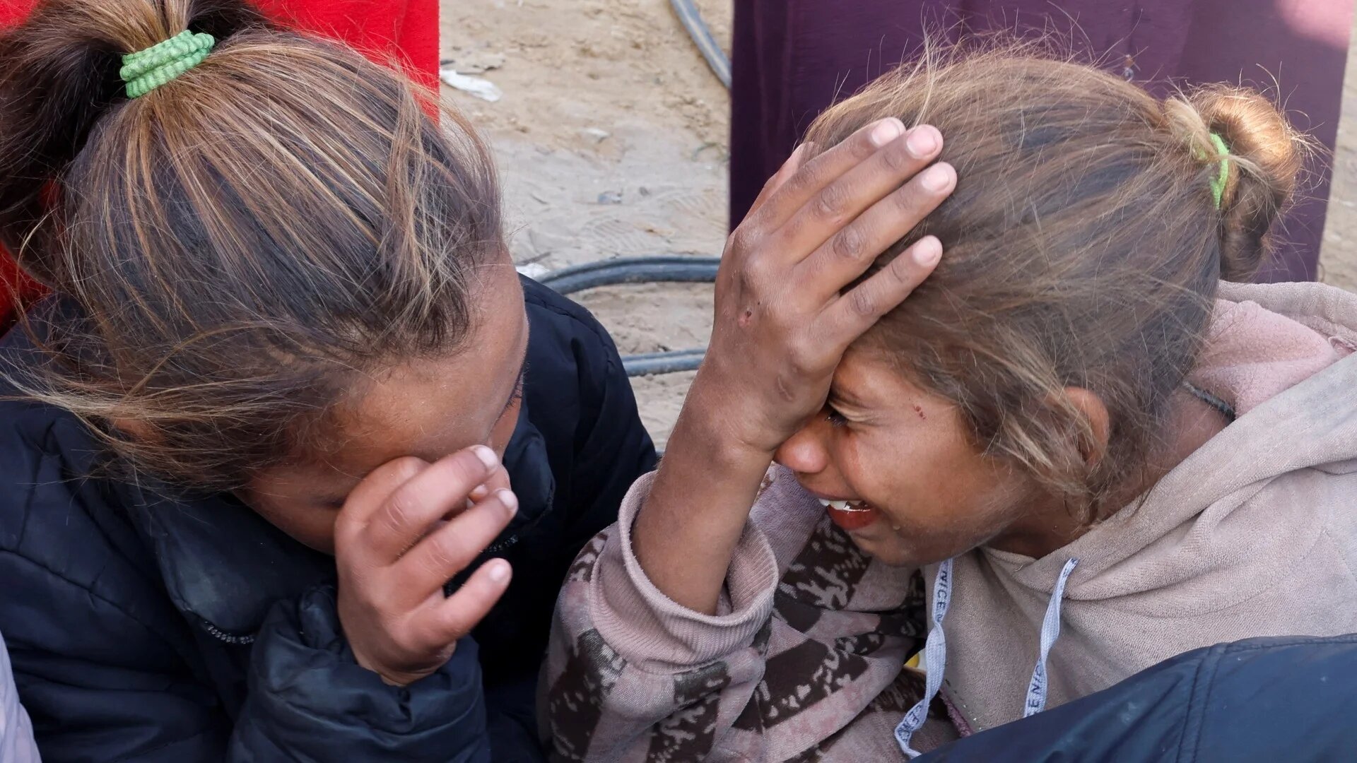 Children cry as people mourn Palestinians killed in an Israeli strike, at Nasser hospital in Khan Younis in the southern Gaza Strip on 5 December, 2024 (Reuters)