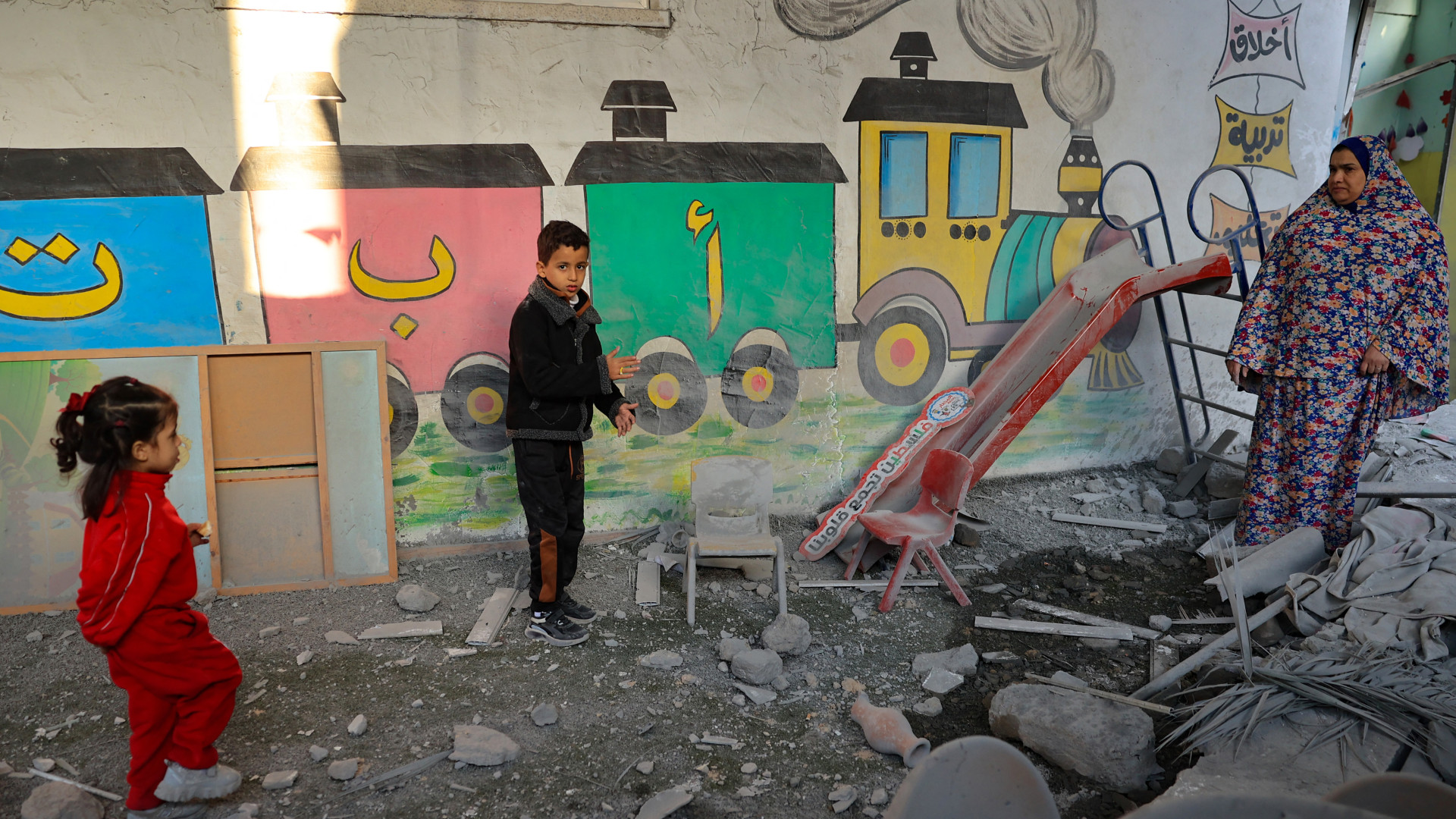 Like her home, Israeli bombs had reduced Doaa's kindergarten classroom to ruins.