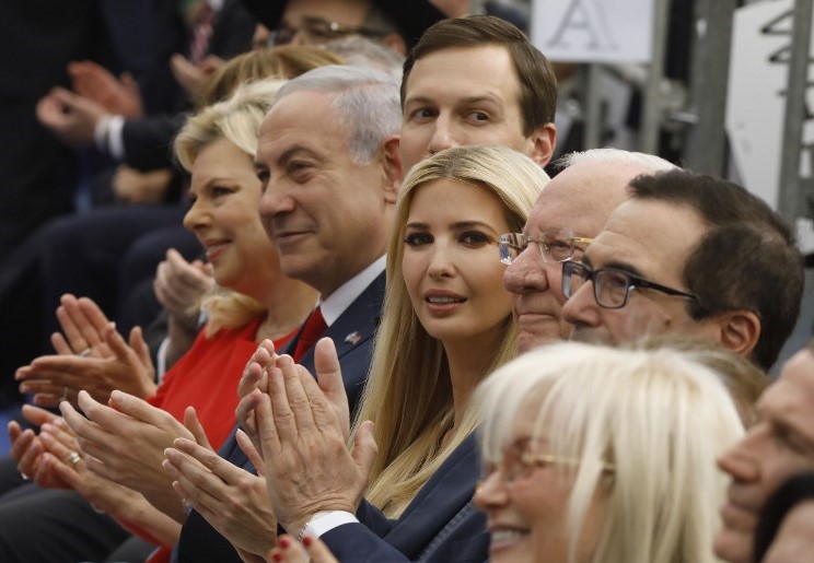 Photo: Israel's Prime Minister Benjamin Netanyahu (2nd L), his wife Sara Netanyahu (L), Senior White House Advisor Jared Kushner (3rd L), US President's daughter Ivanka Trump (C), US Treasury Secretary Steve Mnuchin (R) and Israel's President Reuven Rivlin (2nd R) attend the opening of the US embassy in Jerusalem on 14 May, 2018 (AFP)