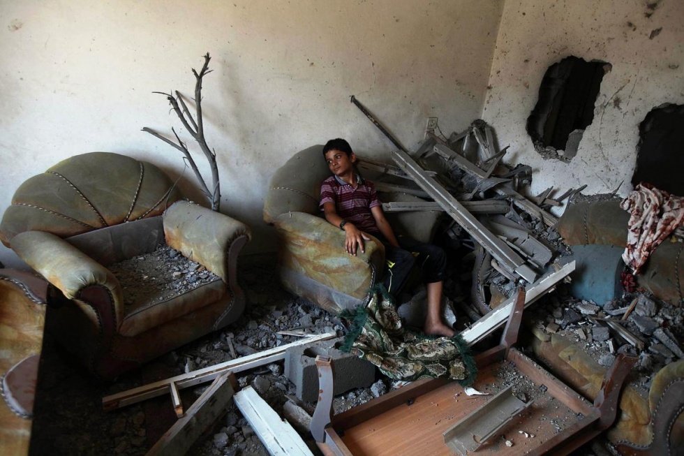 Photo Credit: A boy sits amidst the rubble in Gaza (AFP)