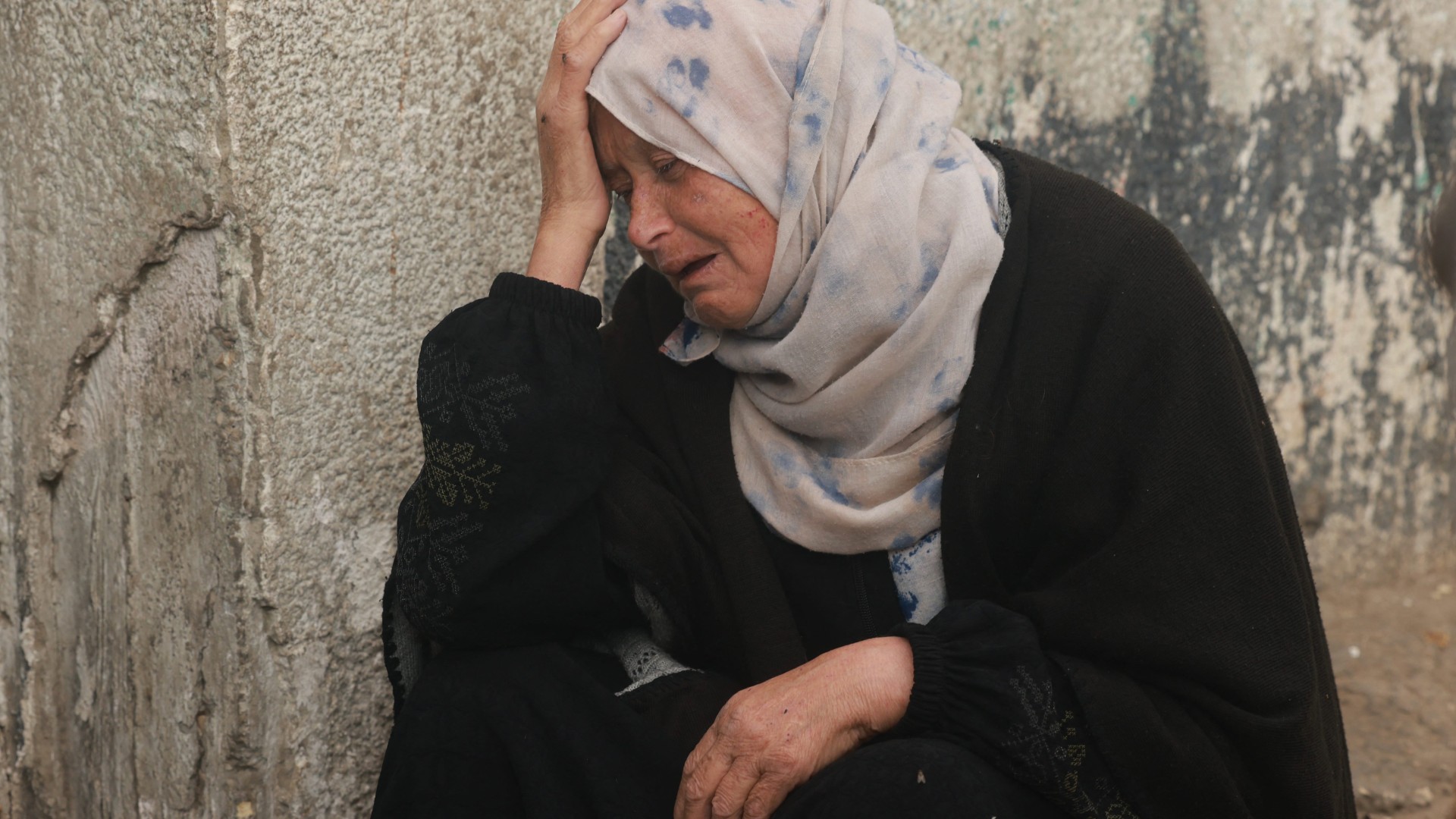 A Palestinian woman mourns the death of a loved one at Al-Najjar hospital following overnight Israeli bombardment in Rafah in the southern Gaza Strip on 18 April, 2024 (AFP)