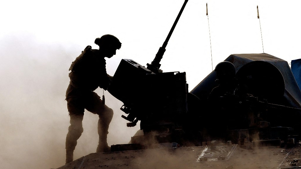 An Israeli soldier stands atop a military vehicle in southern Israel near the border with the Gaza Strip on 29 May 2024 (Jack Guez/AFP)