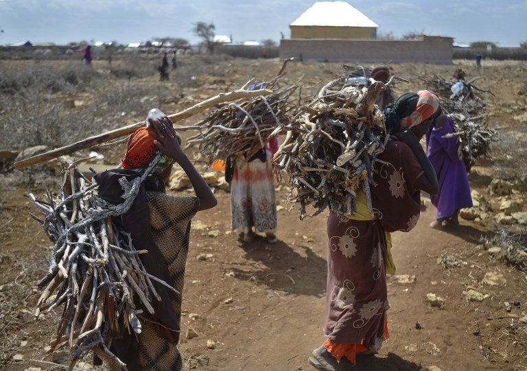 Photo: Women carry firewood in March 2017 as they walk back to a makeshift camp on the outskirts of Baidoa, in the southwestern Bay region of Somalia, where thousands of internally displaced people arrive daily after they fleeing the parched countryside. (AFP)