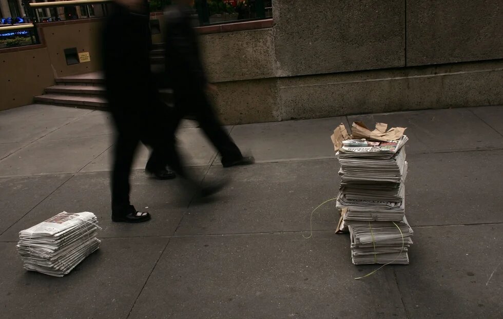 Photo: Pedestrians walk by stacks of newspapers in New York City, the United States, on 12 January 2007 (AFP).