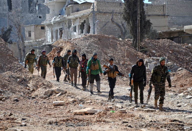 Photo: In February 2017, rebel fighters, part of the Turkey-backed Euphrates Shield alliance, advance towards the city of Al-Bab, about 30 kilometres from Aleppo (AFP)