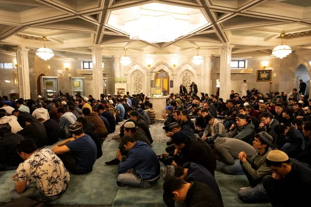 Photo: Tatar Muslims offer Eid al-Fitr prayers at the Qolsarif mosque in Kazan on 15 June 2018 (AFP).
