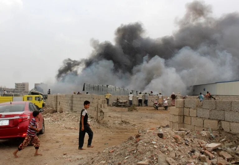 Photo: Smoke rises from inside a military camp after fighters from the separatist Southern Transitional Council took control of a pro-government position in Aden on 31 January 2018 (AFP)