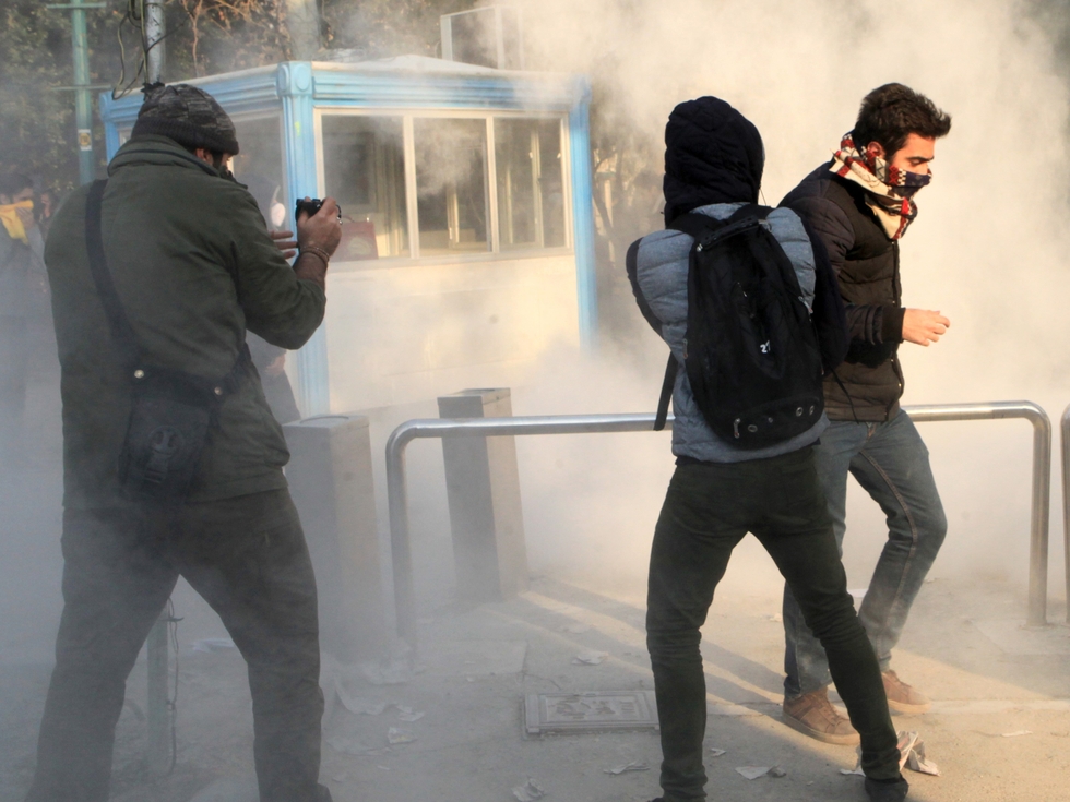 Photo: Iranian students run for cover from tear gas at the University of Tehran during a demonstration on 30 December 2017 ( AFP)