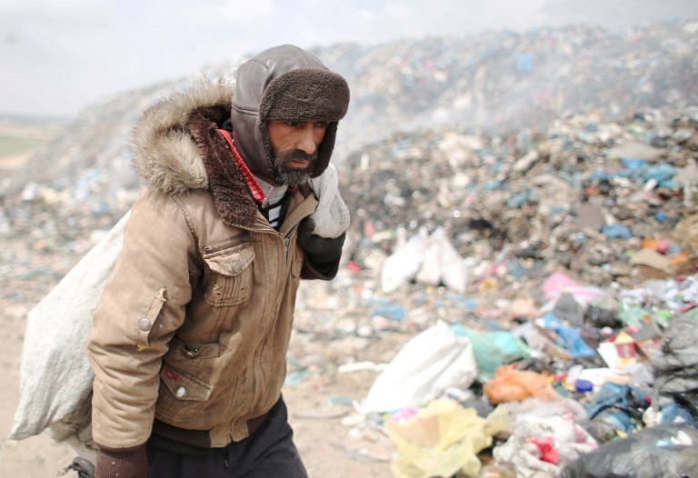 Photo: A Palestinian man walks through a pile of rubbish as he searches for recyclable waste and other items in hope to sell them, at a dump in Rafah, in the southern Gaza Strip on 16 April 2015. (AFP)