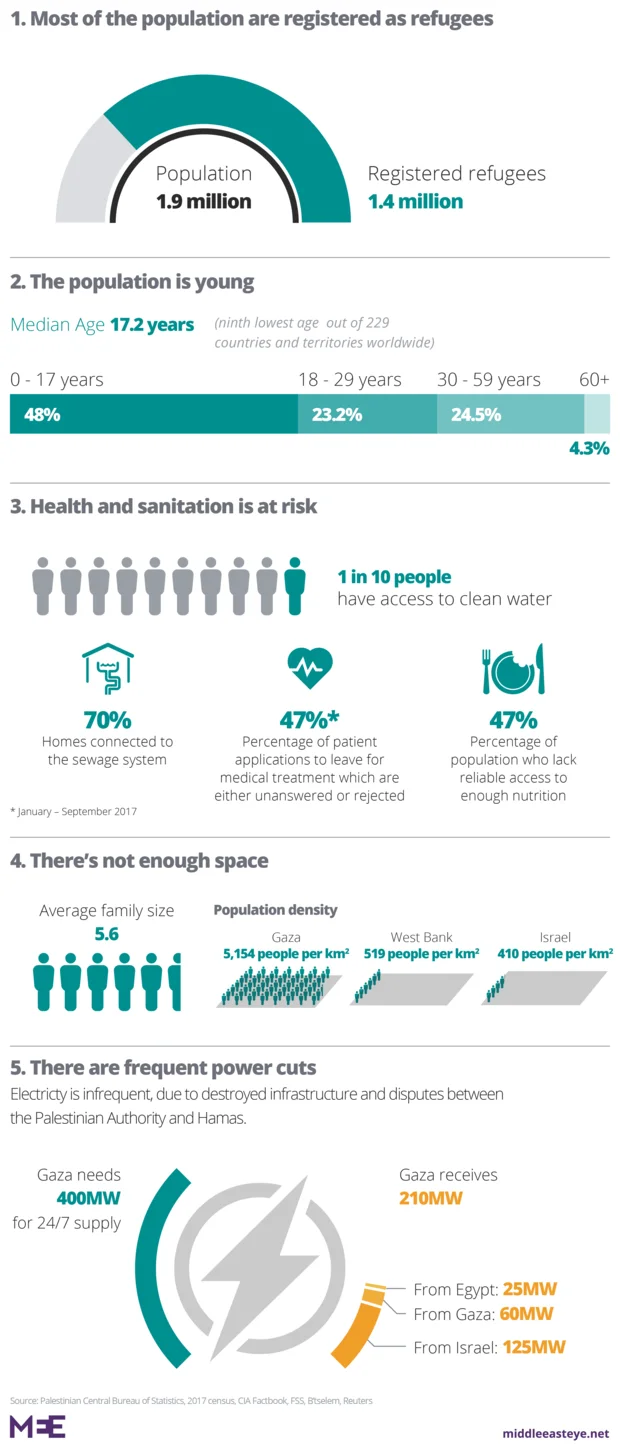 The 2017 UN report talked of the economic "de-development" of Gaza and the environmental conditions which would, it said, make the territory unlivable by 2020. It said there must be immediate moves towards peace in order that people could live "dignified, healthy and productive lives."