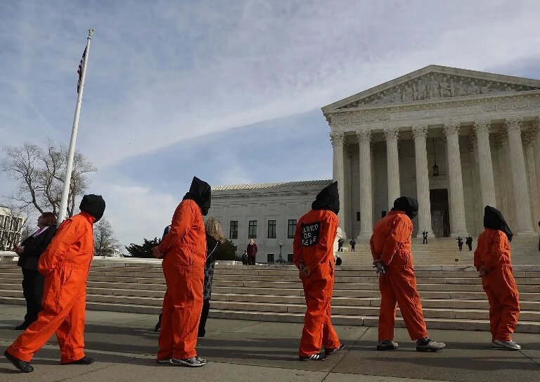 Photo: Protesters gather in front of the US Supreme Court in Washington on 11 January 2017, asking the president to ‘expedite releases from Guantanamo’ (AFP)