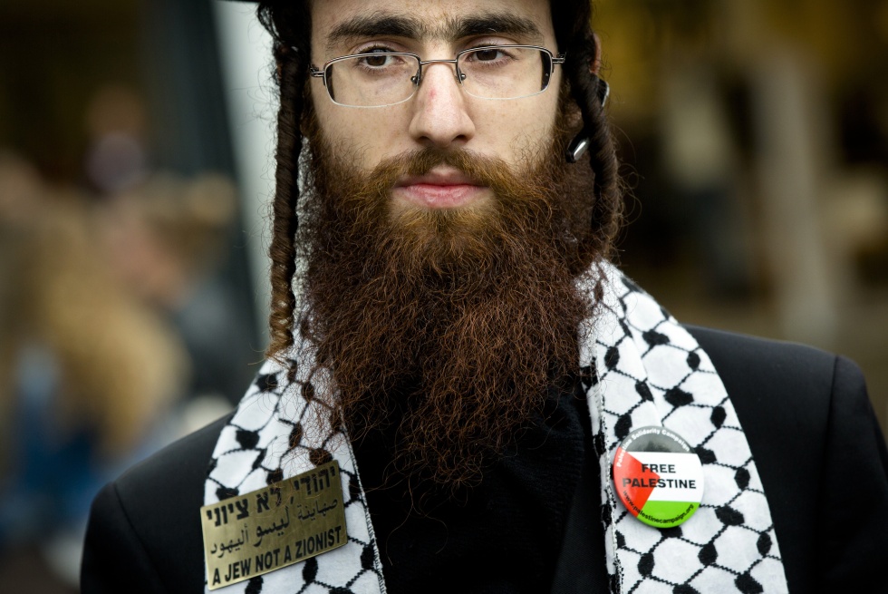 Photo: A member of Neturei Karta, a fringe ultra-Orthodox movement within the anti-Zionist bloc in Israel, takes part in a demonstration against Israel's military operations in Gaza and in support of the Palestinian people in the center of Utrecht, on 17 August, 2014 (AFP)