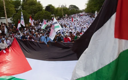 On 3 August, thousands of Indonesians gathered at Jakarta's National Monument, waving Palestinian flags and holding placards demanding justice for Gaza.