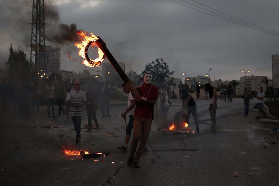 Photo: Palestinian youth burn tyres during clashes with Israeli soldiers close to the Jewish settlement of Bet El, in the West Bank city of Ramallah after Israel barred Palestinians from Jerusalem's Old City on October 4, 2015 (AFP)